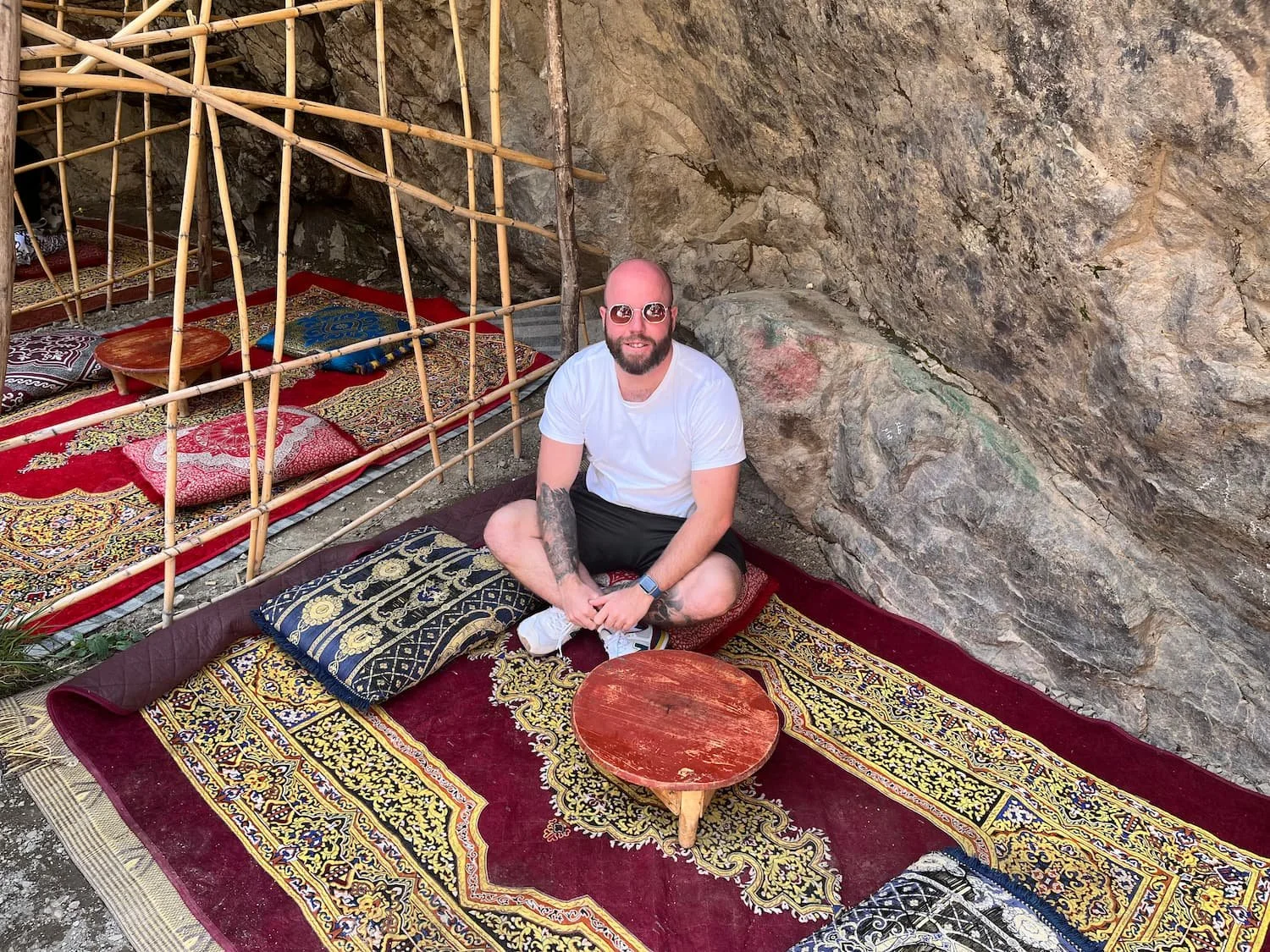 The break at the waterfalls gave us an opportunity to cool down on a hot and humid spring day. We got some photographs in front of the natural Moroccan wonder. There are market stalls to purchase food or drinks, along with some souvenirs. I grabbed a freshly squeezed orange juice and chilled on the traditional Moroccan carpets for a while.