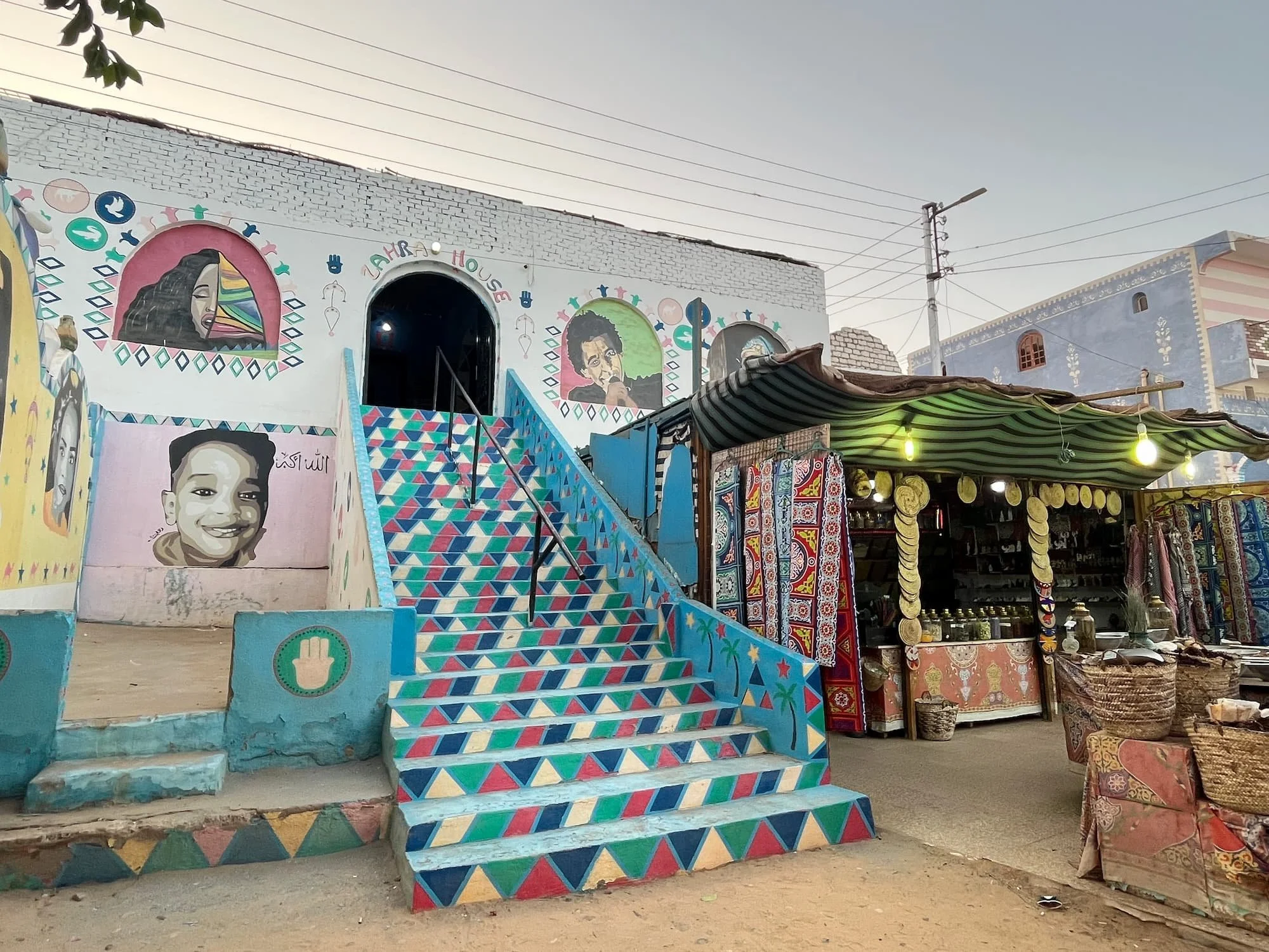The colours are unbelievable in person, with bright blues, pinks, oranges, and those classic Nubian domes that make the whole village feel like an open-air gallery.